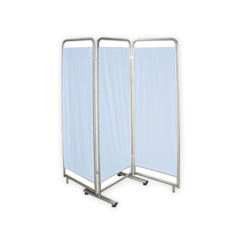 Exclusive 3 wings ward screens with sturdy structure in oval tube (30 x 15 mm), painted with epoxidic powder metal grey. • Width: 60 + 60 + 60 cm (3 sections) • Height: 180 cm • Light blue Trevira curtains • Equipped with 4 adjustable feet that ensure increased stability Made in Italy.Extra informatie