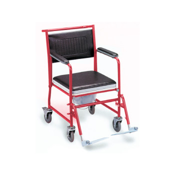 COMMODE WHEELCHAIR - painted Powder coated steel frame, detachable armrest and footrest, solid rear castors with lock, plastic commode seat. Technical Specifications • Total width: 48 cm • Seat width: 44 cm • Rear wheel diameter: 12.5 cm • Front wheel diameter: 12.5 cm • Seat height: 51 cm • Total wheelchair height: 92 cm • Total length: 90 cm • Seat depth: 44 cm • Seat height: 42 cm • Max. load: 100 kg • Kit size: 54 x 53 x 53 cm • NW GW (kg): 17-18Extra informatie