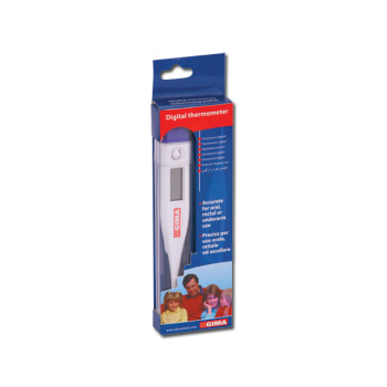GIMA digital thermometers, available in °C or °F, deliver accurate and quick read-out. Safe and easy to use with clear and large display, have following features: