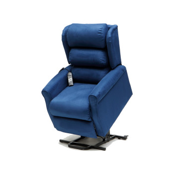 GINEVRA LIFT ARMCHAIRS WITH 2 MOTORS 2 motors lift armchair with standard or extra lifting footrest: it can reach the bed position providing a relaxing experience. Its backrest and footrest can operate separately to any position. Extra lifting footrest allows 8 cm lifting adjustment higher than flat position. • Color: blue • 2 motors • Fireproof: NO • Footrest: standard Lift armchairs that feature a powered lifting mechanism that pushes the chair up from its base to assist the user to a standing position. Power supply: 100-240 V - 50/60 Hz. Multilingual manual: GB, FR, IT, ES. Technical Specifications • Seat Width: 46 cm Depth: 51 cm Height: 40 cm • Backrest height: 66 cm • Chair Width: 74 cm Lenght (reclined): 169 cm • Load: 150 Kg (331 lbs)Extra informatie