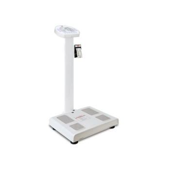 WUNDER WBA300 BODY COMPOSITION ANALYSER WITH PRINTER - 300 kg - Class III Professional electronic scale with BIA body composition analyser. Simple, fast, and non-invasive examination of BMI, fat, muscle, and water components. Functions: weight, tare, mother/child weight, hold, BMI, autozero, programmable auto-off. - Analysis of nutritional solutions advised by professionals - Complete check-up in 20 sec. with a single weight reading - Easy interpretation of results gives a complete picture, helping the patients to understand the importance of this screening. - Large painted aluminium base with 4 stainless steel tactile electrodes. - ABS indicator with LCD display set on a column in painted aluminium. - Supplied with power adaptor, RS232 interface, level, 4x large anti-slip adjustable feet, 2 integrated wheels for easy transport, thermal printer with its power cable, connector, and 1 paper roll (57 x Ø 30 mm). - Multilingual manual: GB, IT, ES. Printer Data: Date, Time, Body Type, Sex, Age, Height, Weight, Clothes Weight, BMI, BMR, Fat (kg -%), FFM, Muscle Mass, Protein Mass, Skeletal Muscle, Bone Mineral Content, TBW, Intra-extracellular water. LCD Display with 5 digits 20mm (Weight), Multi-line LCD Display 3 digits 12mm (BMI / Age-Fat), Keyboard with 20 keys Made in Italy. Technical Specifications Frequencies: 4 bipolar mono-frequency 50 kHz electrodes Impedance frequency: 50kHz 500uA Range: 200 ~ 1000O / 0.1O Capacity: 300 kg Sensitivity: 100g/0.1% Age Range: 10 ~ 80 years, increase of 1 year Size: 450x550xh 880 mm Platform size: 450x340xh 85 mm Column size: 100x50xh 750 mm Weight: 11 kg Power supply: adapter AC 12V 2A and 7.2V 2000mA recharg. battery Power supply optional: 6x1.5V AAA batteriesExtra informatie