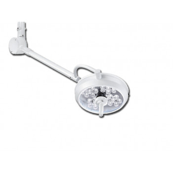 Shadowless lamp with exceptional technical performance and flexibility of use. Suggested for small surgery, gynaecological and first aid surgeries. Cupola with four inner modules, each with 7 LEDs (total of 28 LEDs) displayed in a radial layout with lenses allowing shadowless and deep light. LEDs modules guarantee continuous light, even in the unlikely event that a LED should fail. Extremely easy to handle and stable in position. Focusing and adjusting the diameter of the illuminated area takes place by rotating the sterilizable handle at the centre of the reflector.