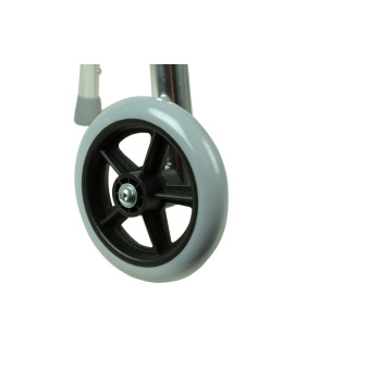 WALKING FRAME - 2 WHEELS Made of lightweight aluminium tubing, with padded hand grips, 2 non-slip ends and 2 with wheels. Size 51x64 cm, foldable with adjustable height 79-97 cm. Instructions: GB, FR, IT, SE. Weight: 3 kg - Load: 100 kg.Extra informatie