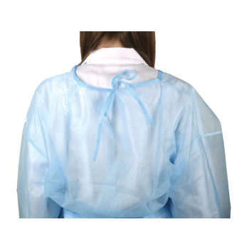 WATERPROOF DISPOSABLE GOWNS PP 25 g • NON STERILE • Size: Medium 115 x 137 cm It can be used in clinics, patient rooms, laboratory, check point, community... Not suitable for ICU and operating room. - collar with two ties - cuffs with elastic - long sleeve - waist with ties Packing size: 52 x 33 x 30 cm Gross weight: approx. 6.8 kg Multilingual instructions: GB, FR, IT, ES, PT, DE, GR, SE, RO, PL, Arabic. Sold in a box of 100 (10 pouches of 10 pieces).Extra informatie